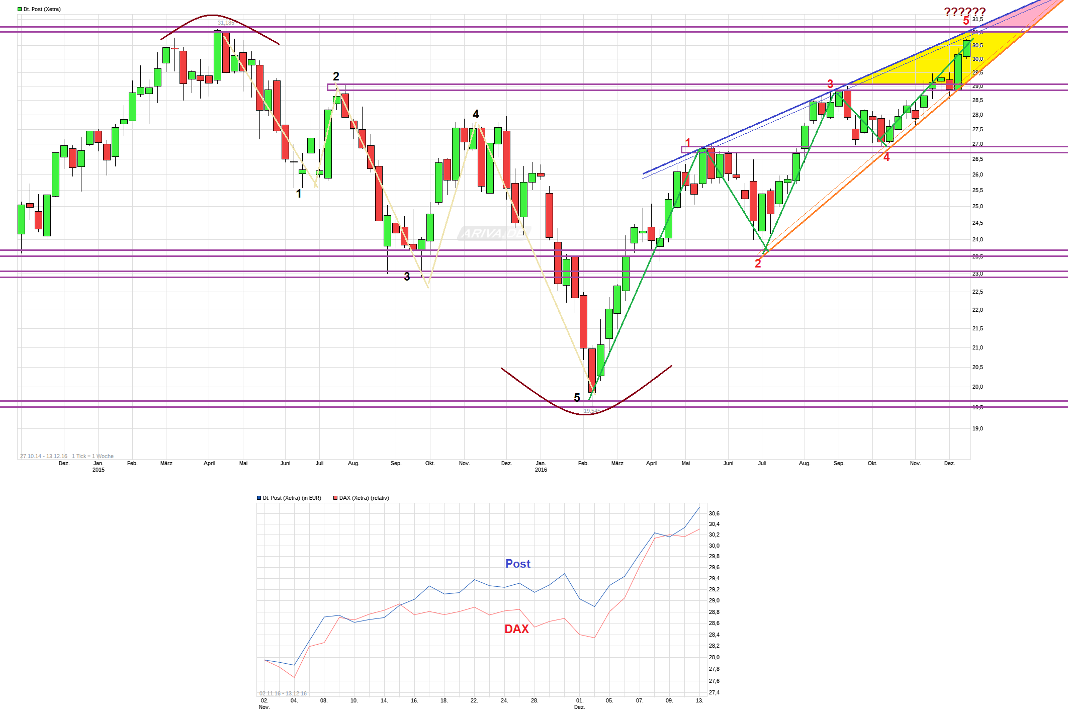 Übrigens ist so eine Analyse auch ein Faustschlag in die Fresse der anderen Analysten, weil nicht nur der große Abstand nach oben erweitert wird, sondern zugleich auch schon der Horizont für die drei Jahre noch weiter nach oben gesetzt wird. Das müssen sich die anderen Analysten gefallen lassen, dass das nichts anders bedeutet, dass alles, was unter den jetzigen 38 liegt, eben zu wenig ist, weil es danach noch weiter nach oben geht. Also indirekt eine Analystenschelte.