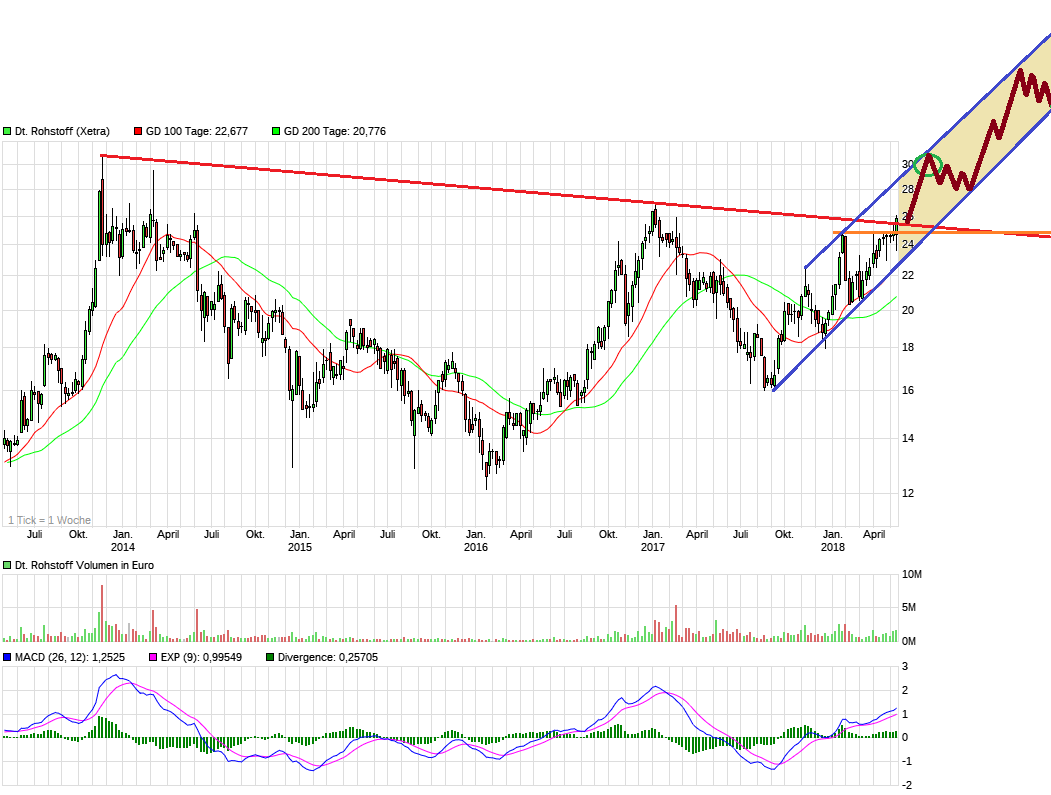 Sowohl fundamental als auch charttechnisch gehe ich erstmal davon aus, dass wir bis August nach den Halbjahreszahlen den Bereich 30-31 € ansteuern. Mittelfristig halte ich auch 40 € für denkbar.