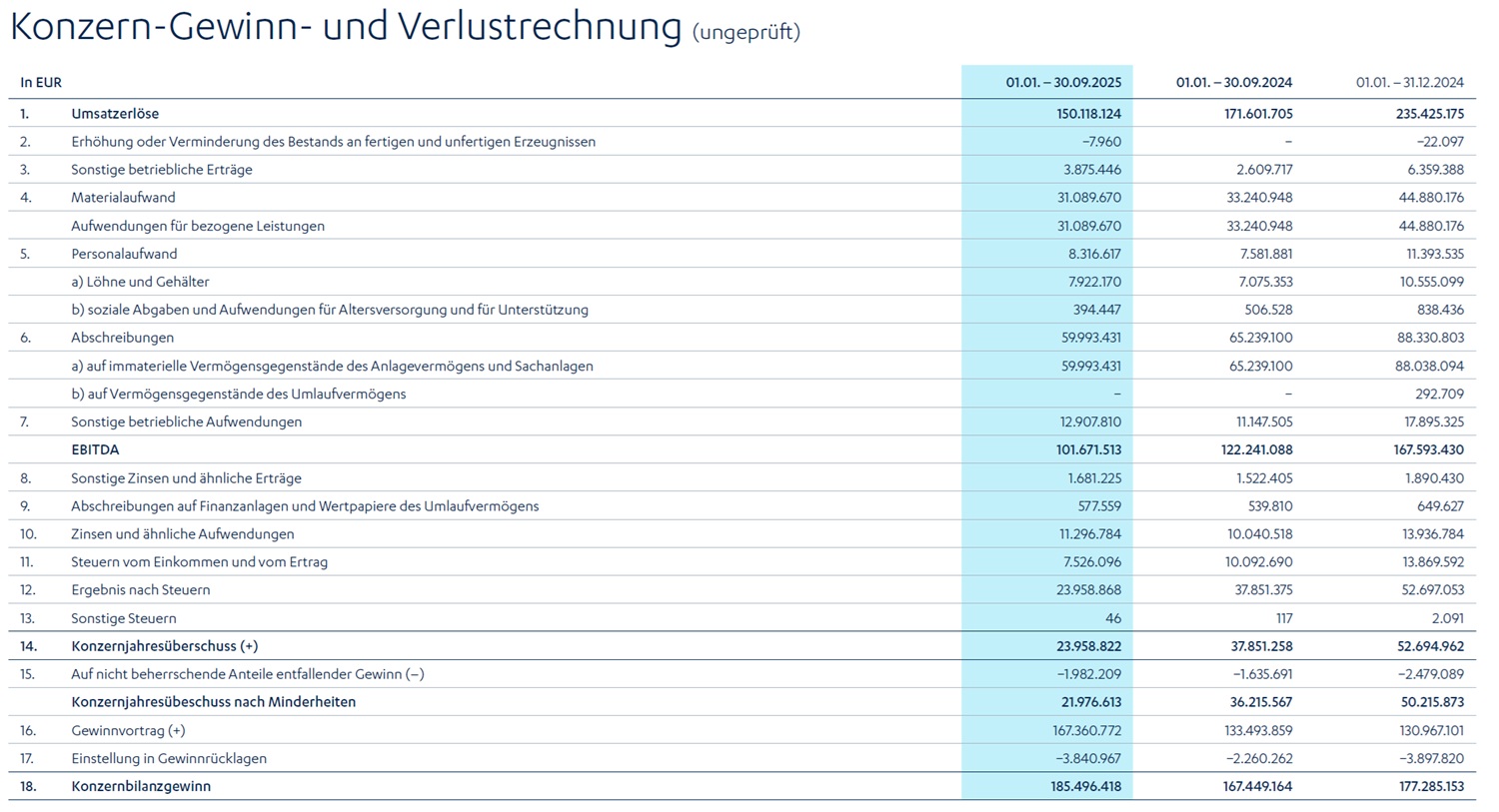 EPS nach 9 Monaten 4,59 € pro Aktie