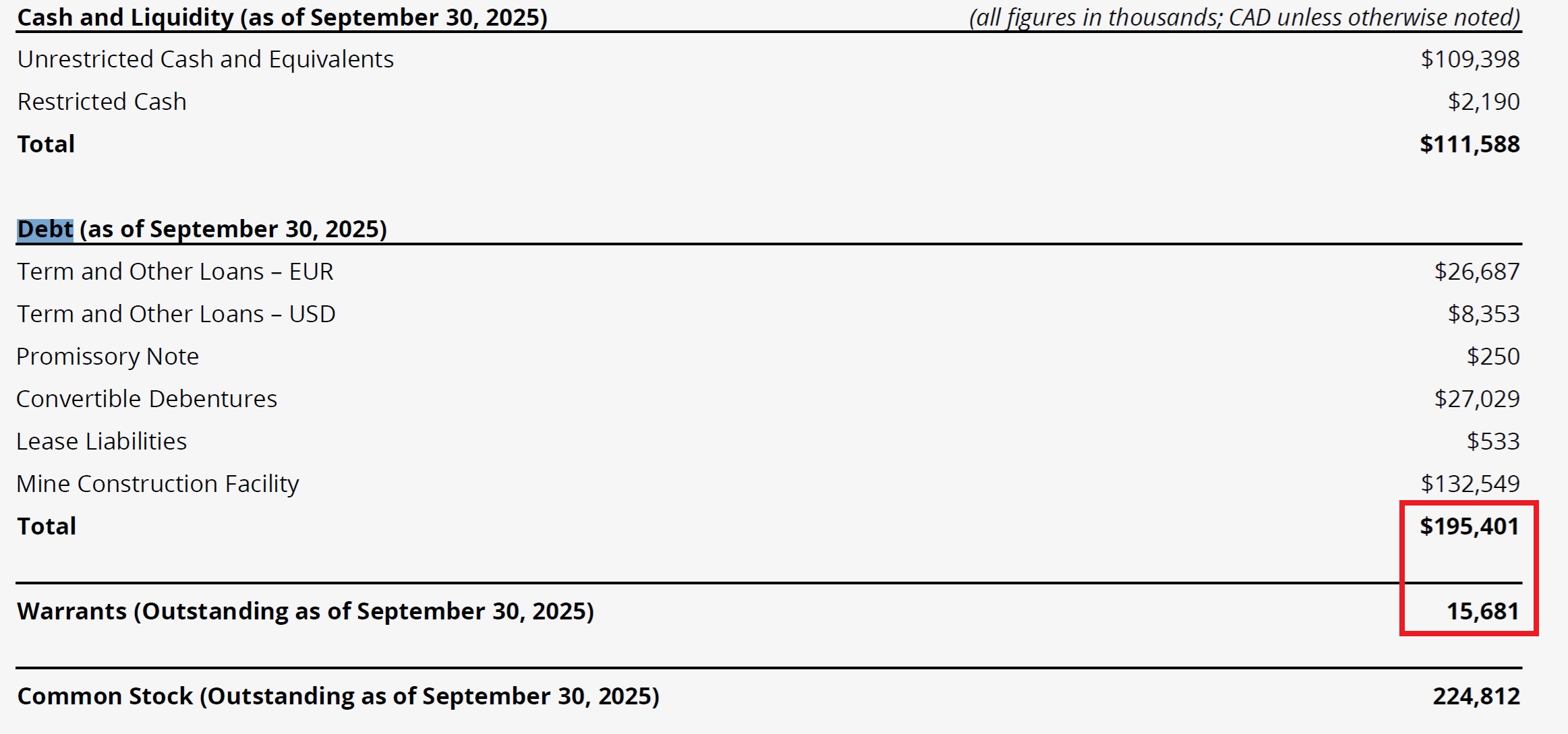 Der ausstehende Nennbetrag der Anleihen zuzüglich etwaiger aufgelaufener, noch nicht gezahlter Zinsen ist nach Wahl des Inhabers zu einem festen Wandlungspreis von 1,05 EUR, 1,275 US$, 0,75 EUR bzw. 1,245 US$ je Stammaktie für den Nennbetrag und zu dem höheren der folgenden Beträge für die aufgelaufenen Zinsen wandelbar: (i) 1,05 EUR (entspricht 1,68 USD) oder (ii) der Euro-Gegenwert des volumengewichteten Durchschnittskurses der Stammaktien des Unternehmens an der TSX an den fünf Handelstagen unmittelbar vor dem Wandlungsdatum. Da die Wandelschuldverschreibungen auf Euro und USD lauten, enthalten sie implizite derivative Verbindlichkeiten.