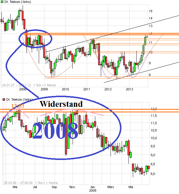 "Im Bereich um die 11,95/12,03 liegt nun ein multipler Widerstand aus Frühjahr und Herbst 2008."