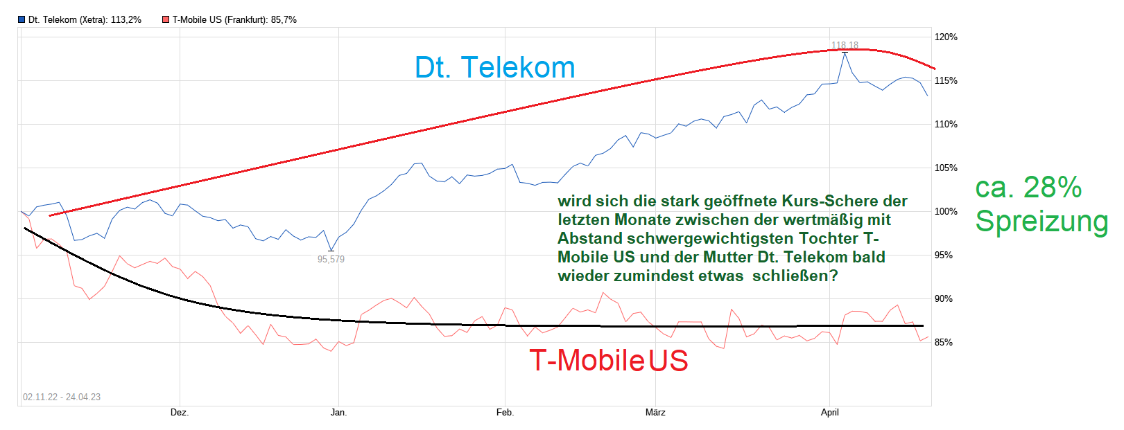 Zur Dividende: die wird in meinen Augen moderat steigen aber sicher sein. Sobald alle drei Ziele erreicht worden sind, also TMUS-Mehrheit (erreicht), Glasfaserbau (sehr guter Weg) und Schulden (sehr guter Weg) kann man über solche Dinge nachdenken. Ich finde die aktuelle Situation, also stabile Dividende UND steigende Aktie, ganz gut.