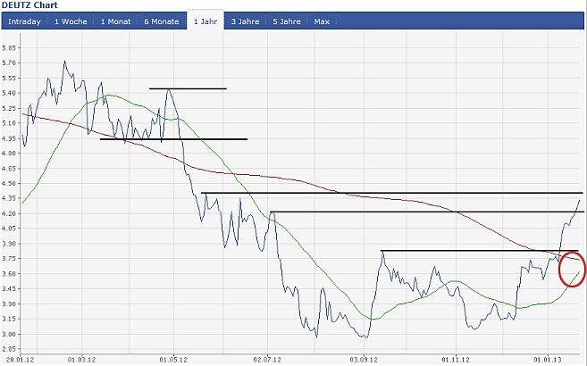 Außerdem: durchbricht die 38-Tage-Linie die 200-Tage-Linie von unten, wäre das ein weiteres "Kaufsignal".