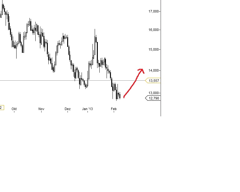 Allerdings besteht ein übergeordneter Abwärtstrend. Immerhin könnte man die nächste Aufwärtsbewegung mitnehmen und dann neu überlegen.