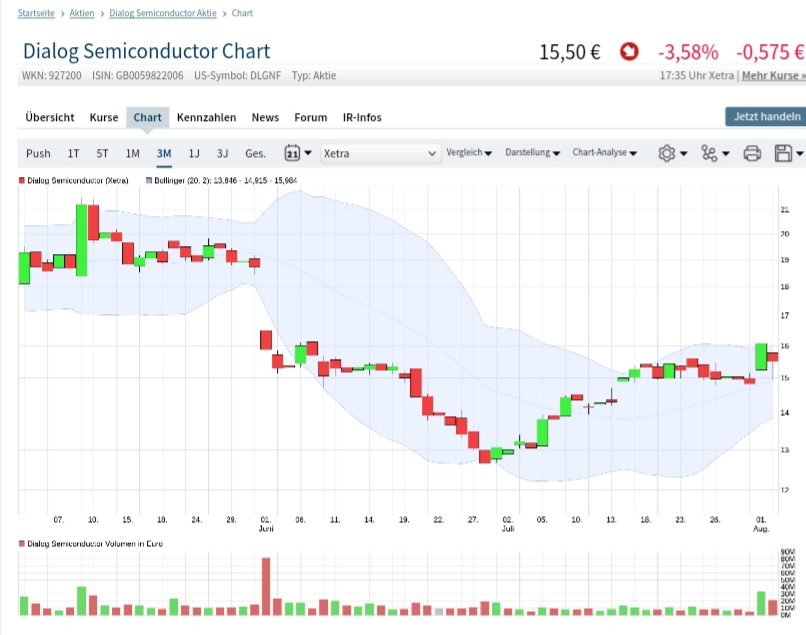 Die Kursentwicklung hat für mich heute wenig Aussagekraft: gestern +9%, Dax -2%, AMS -6% (zumindest L&S), Cirrus stark im Minus, etc. - das perfekte Umfeld für Abgaben. Interessant, dass gestern die beiden LVs weiter erhöht haben - hätte eher mal gedacht, dass die hinter dem Anstieg standen. Würde mich nicht wundern wenn die heute auch dazu beigetragen haben.