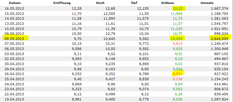 Ein Blick auf die Kurse vor dem letzten, ebenfalls geshorteten Q1 zeigt - zumindest anfängliche - Ähnlichkeiten. Auch dort begann 7 Handelstage vor Veröffentlichung der Zahlen ( 8.5. ) die Kurserholung von insgesamt 20% bis zum SK des Veröffentlichungstages. In den darauffolgenden 6 Handelstagen ging es weitere 15% nach oben.