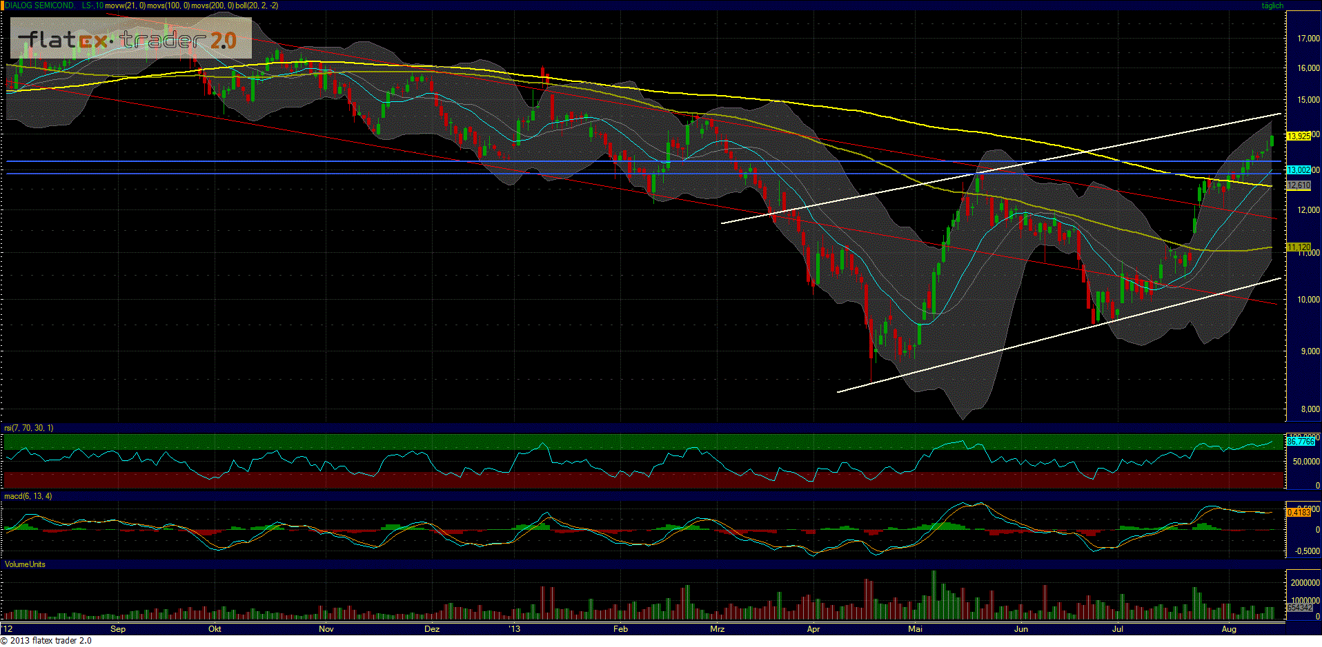 Was sich in 2013 aber geändert hat, ist dieser Niedergang nach der Veröffentlichung von Zahlen. Das war bei den letzten beiden Quartalszahlen genau andersrum. Da ging die Post jeweils ab.