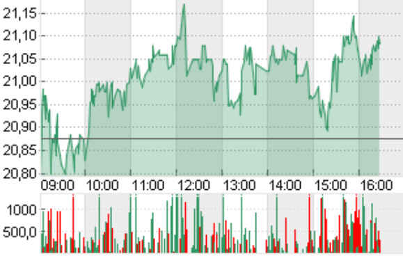 Es gibt noch jemanden, der versucht den Kurs zumindest bei 21 zu halten. Es ist nicht zu erkennen, dass er ihn wirklich entscheidend drücken will.