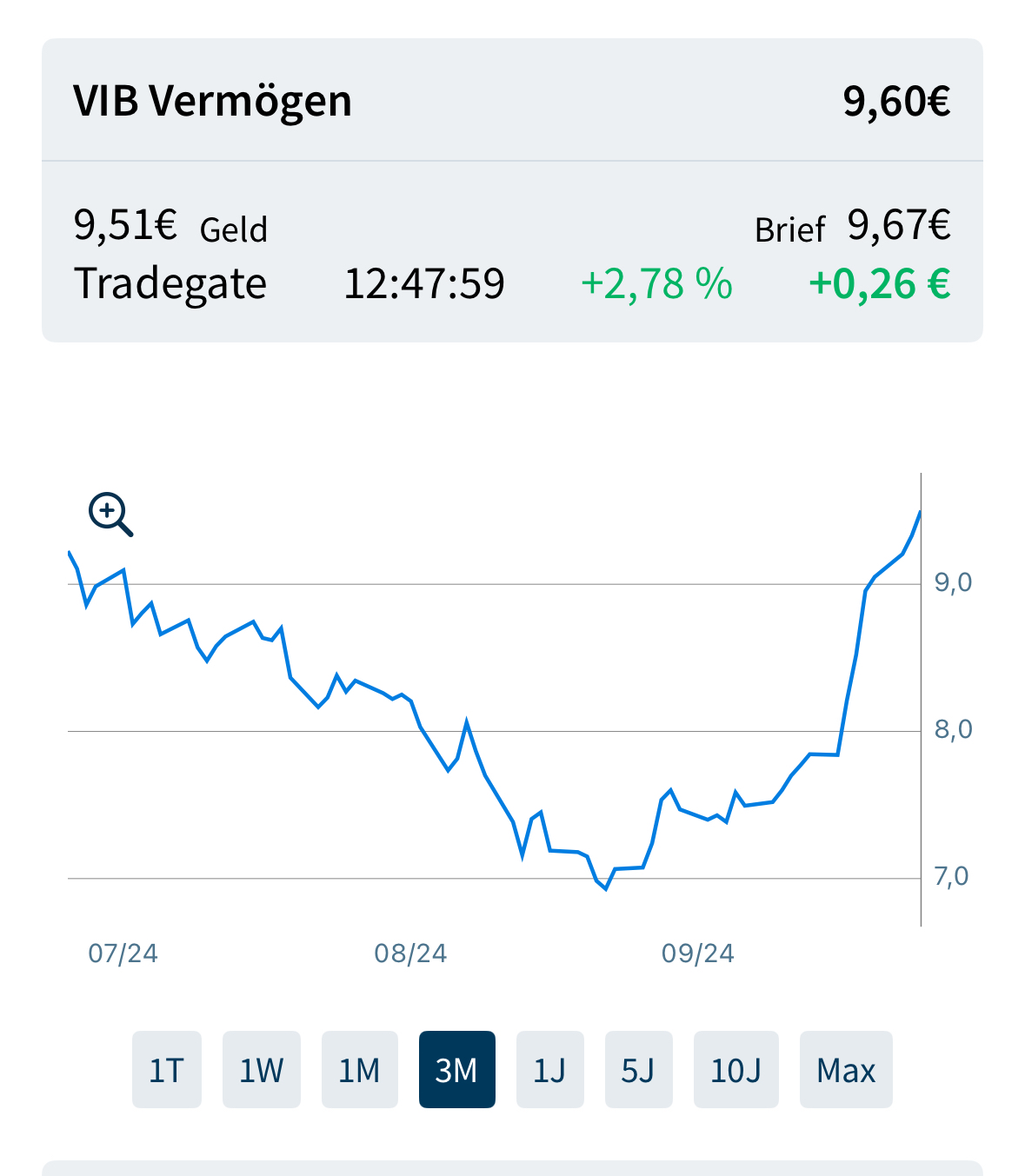 und Kurs der VIB steigen seit einigen Tagen auch ganz gut. Woran liegts? https://www.finanzen.net/chart/vib_vermoegen_5