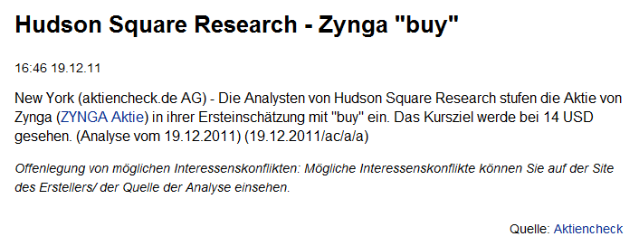 Der Börsengang war schon länger angedacht und mitte 2011 hatte man einen faieren Wert für ZANGA ermittel der bei ca. 20 Milliarden Dollar lag.