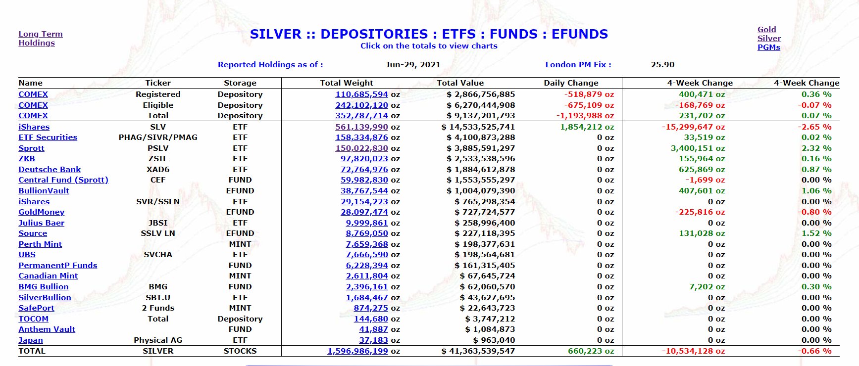 "As of Monday evening, with one day to go before the delivery process begins, there were still 19,759 Jul21 contracts open on COMEX. This very likely indicates that the initial amount left open and "standing for delivery" as the month begins will be over 10,000 and perhaps as high as 14,000. That would mean up to another 70,000,000 ounces of offtake, and if that's the case then July will approach the record totals seen in July of last year, marking a continuation of the trend and a march toward a new annual record of total deliveries here in 2021."