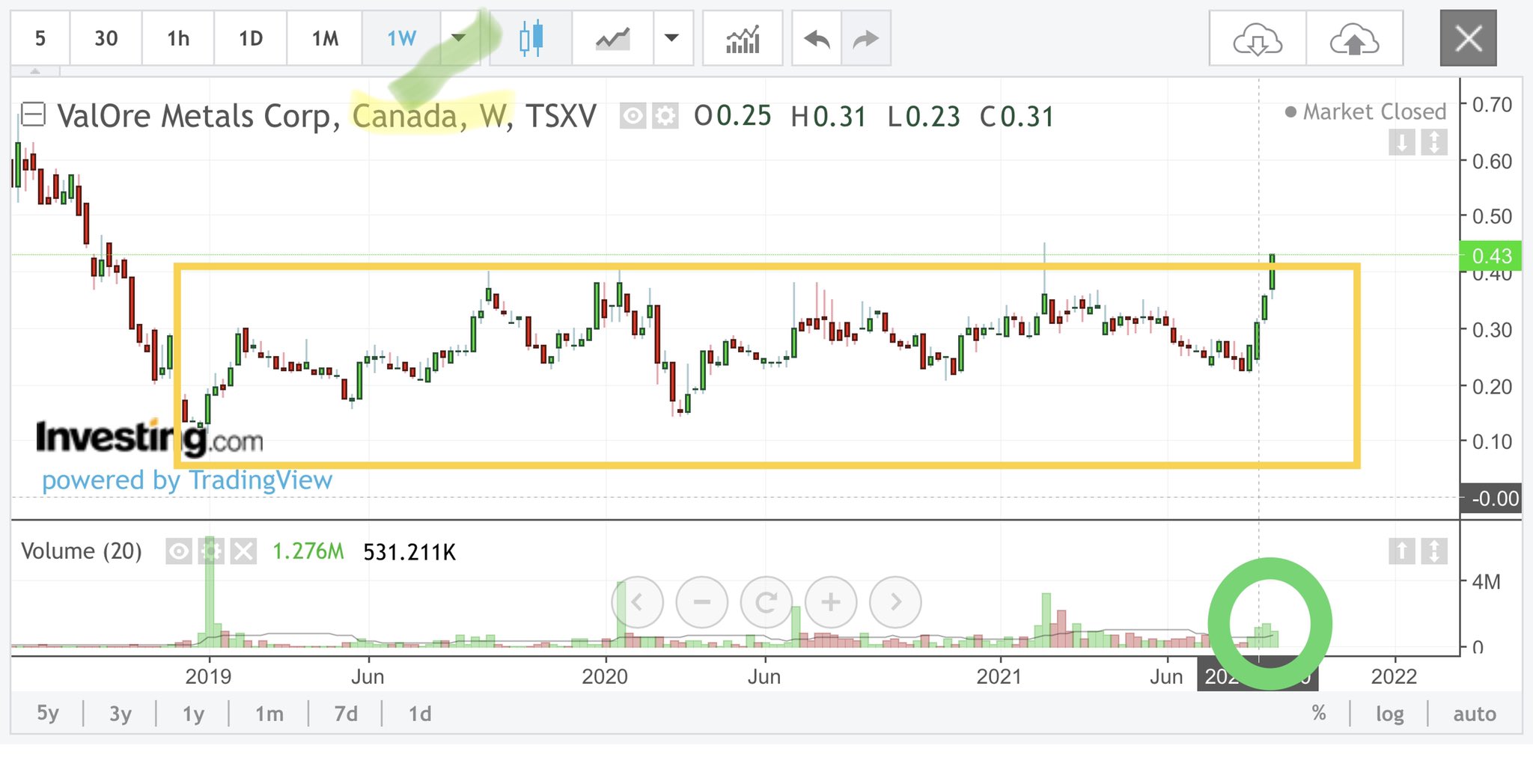 Desweiteren ist die Entwicklung der Kurses bisher insgesamt Klasse gewesen. SInd von ca. 3 cad cents in der Spitze auf fast 80 cad cent gestiegen. Das sind in der Spitze mehr als 2500 Prozent. Das ist enorm. Allerdings hat das Sentiment gedreht und durch den Kursrückgang beim Gold ist der Kurs abverkauft worden. Jetzt sind wir bei ca 0,33 cad. Also nicht immer Origen so beweihrächern da es bisher bessere Plays in Neufundland gegeben hat.