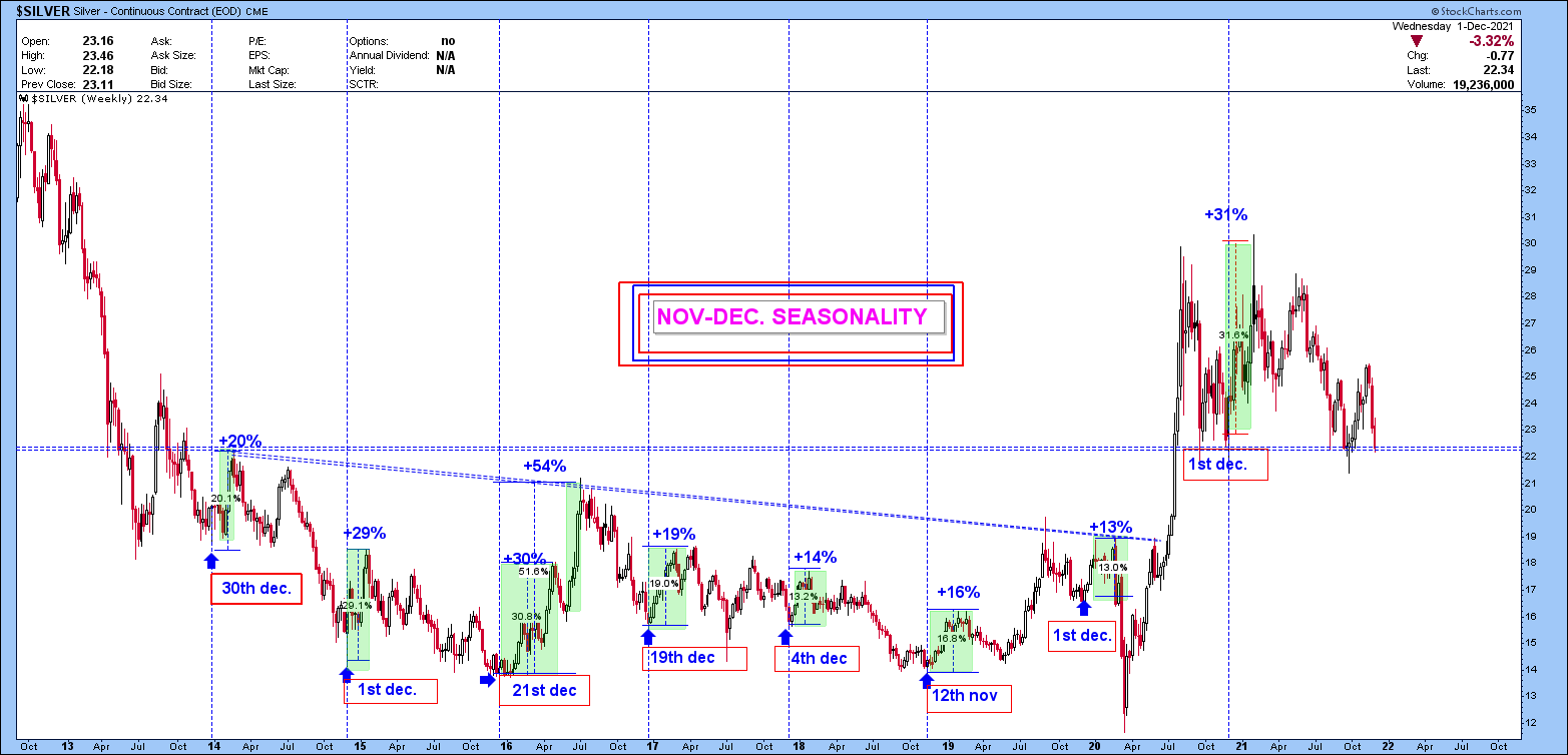 Und die untere Grafik von Stefano Bottaioli , was hat Silber die letzten Jahre im Dezember gemacht.