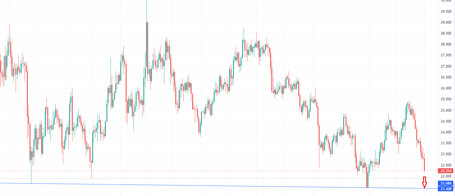 schlecht aus , viele Twitter Jungs sind kurz davor auf die Bärische Seite zu wechseln.Es gibt kleine Lichtblicke , aber wir müssen uns nix vor machen, Silber steht jetzt an der Kante kurz davor den Bereich 18-21 $ anzulaufen (Vielleicht ist das der Finale Flush).Noch ist es nicht soweit, entscheidet sich nur in den nächsten Stunden/Tagen. Langfristig führt an Silber kein weg vorbei und auch wenn hier einige Denken ich bin zu Positiv , wenn ich negativ wäre dann würde ich dem ganzen hier den Rücken zu kehren , weil ich nicht mehr überzeugt wäre und würde nur noch physisches halten.