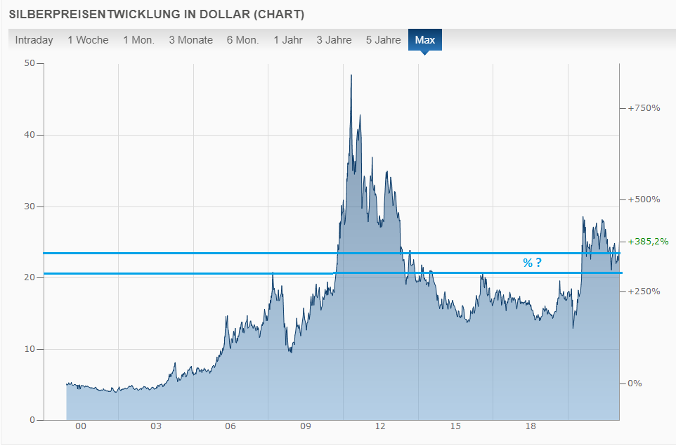 Aber egal, wenn wir bei Silber bleiben sind es 76% seit 2007 und seit 2000 sind es 470%