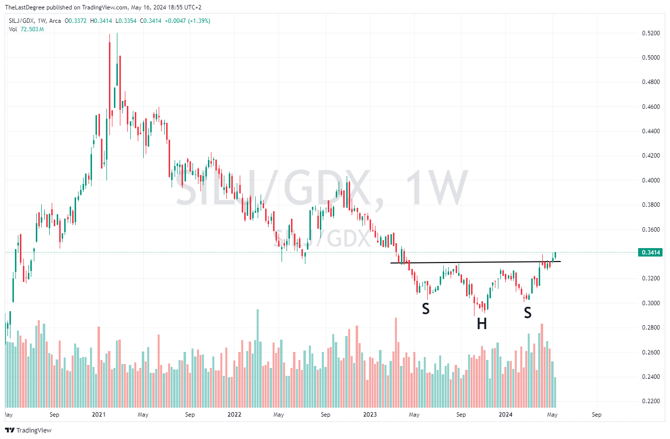 "Selbst Kunden, die am Kauf von Gold interessiert sind, beginnen zu sagen: 'Nun, vielleicht kaufe ich zuerst Silber und warte darauf, dass das Verhältnis irgendwie ausgeglichen wird'", sagte Gründer Gregor Gregersen. Zwischen dem 1. und 25. April verkaufte das Outlet 74 Unzen physisches Silber für jede Unze Gold, verglichen mit einem Durchschnitt von 44 im Jahr 2023.