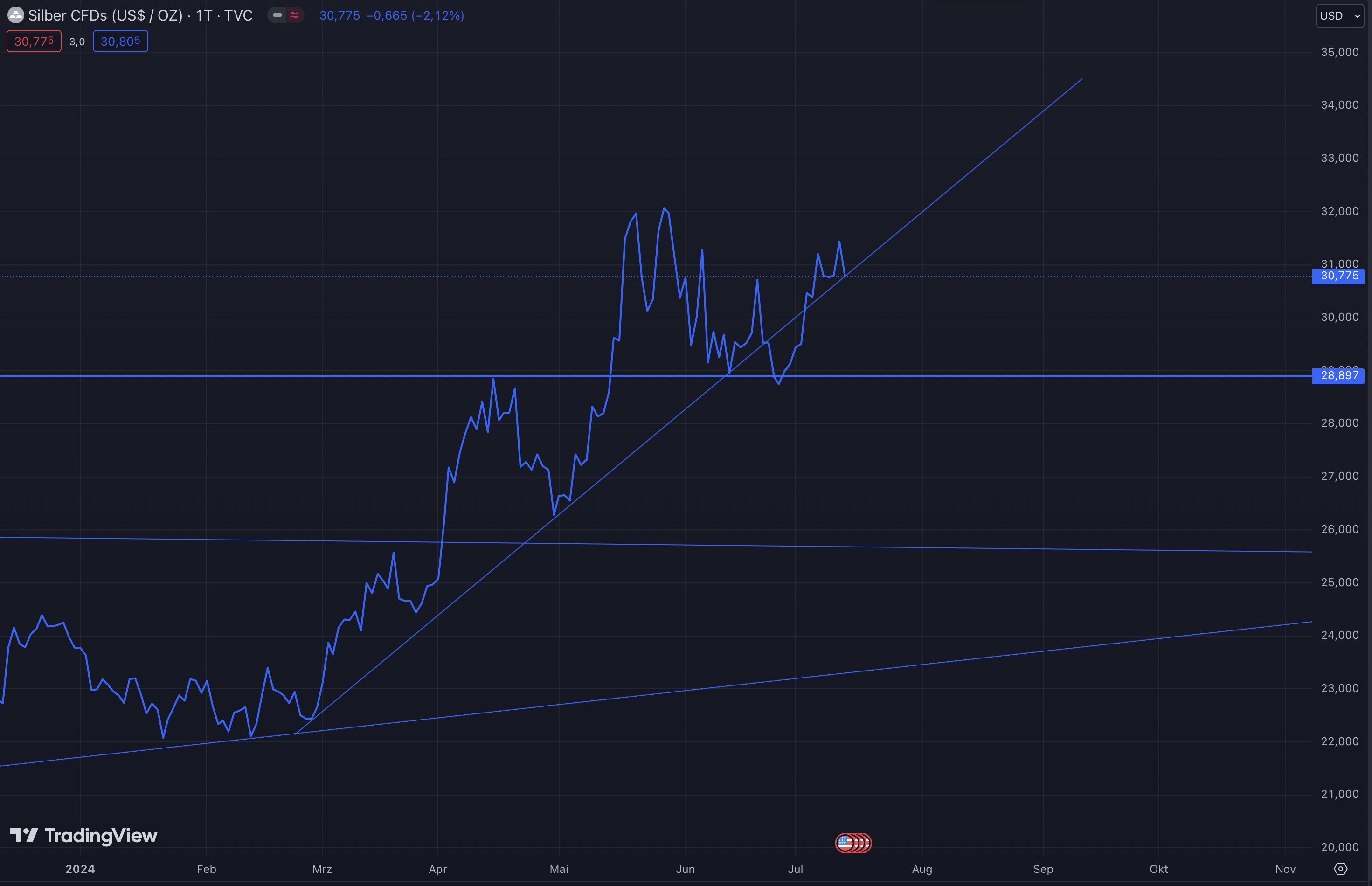 Newmont / Alamos 24. Juli, Eldorado 25. Juli., Agnico / Kinross/ Hecla/ Torex / Endevour Mining 31. Juli