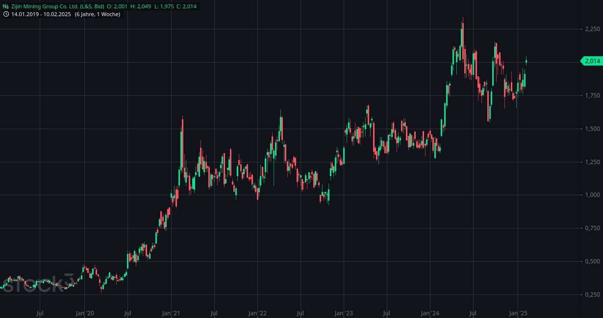 Der Kurs wird vor allem von Kupfer bestimmt, weil Zijin der größte Kupferproduzent Chinas ist.