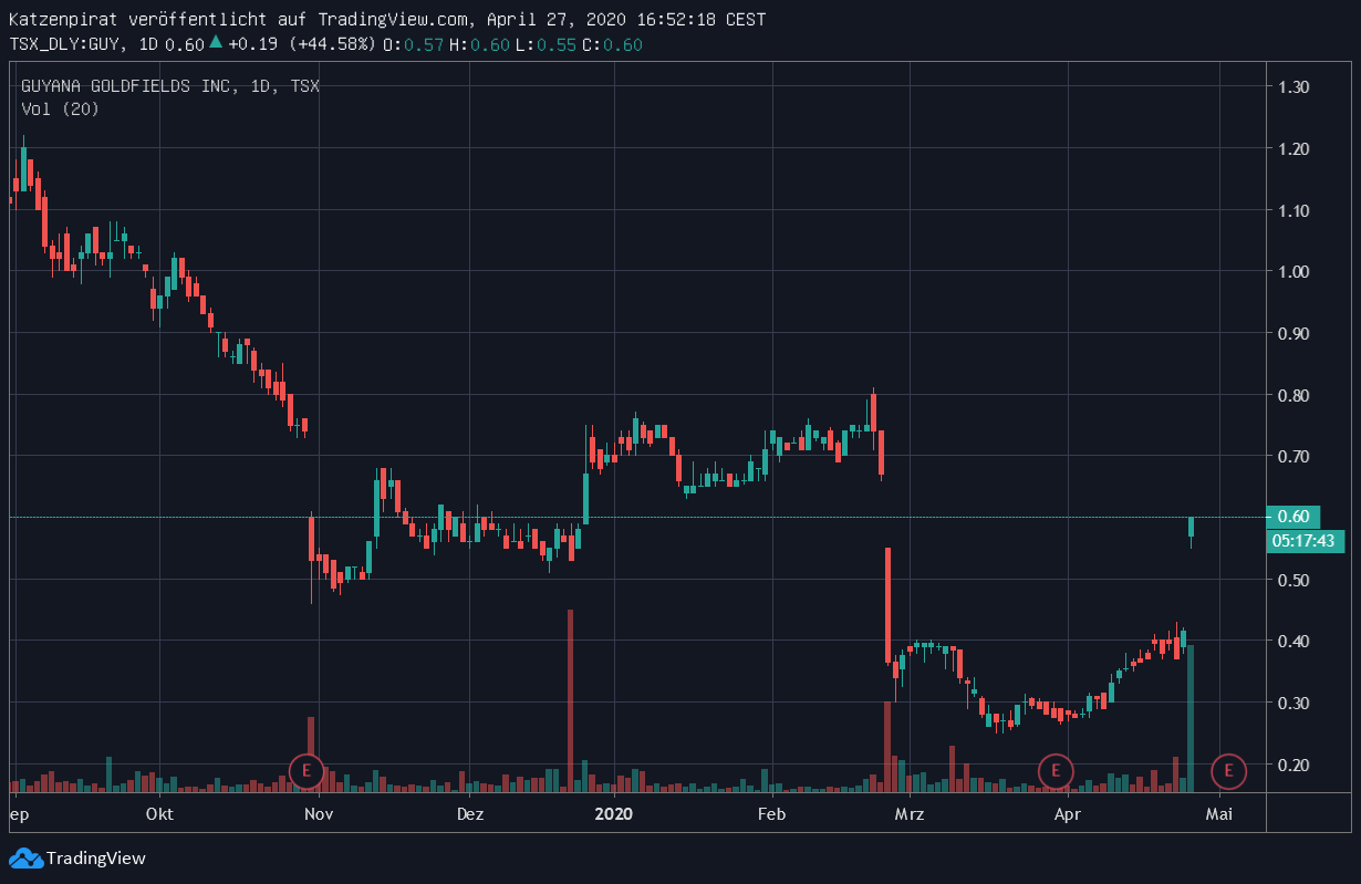 in 2 Wochen im März: 4,778 oz of gold poured during March ( entspräche einer Quartalsförderung von rund 31.000 oz. ) beabsichtigt sind aber 75000 oz pro Quartal im 1. Jahr. Bisher ist auch nicht die Rede davon, dass eine Betriebsunterbrechung wg. Corona ins Haus steht. ( die Info v. 30.3. ist bisher nicht negativ aktualisiert worden )