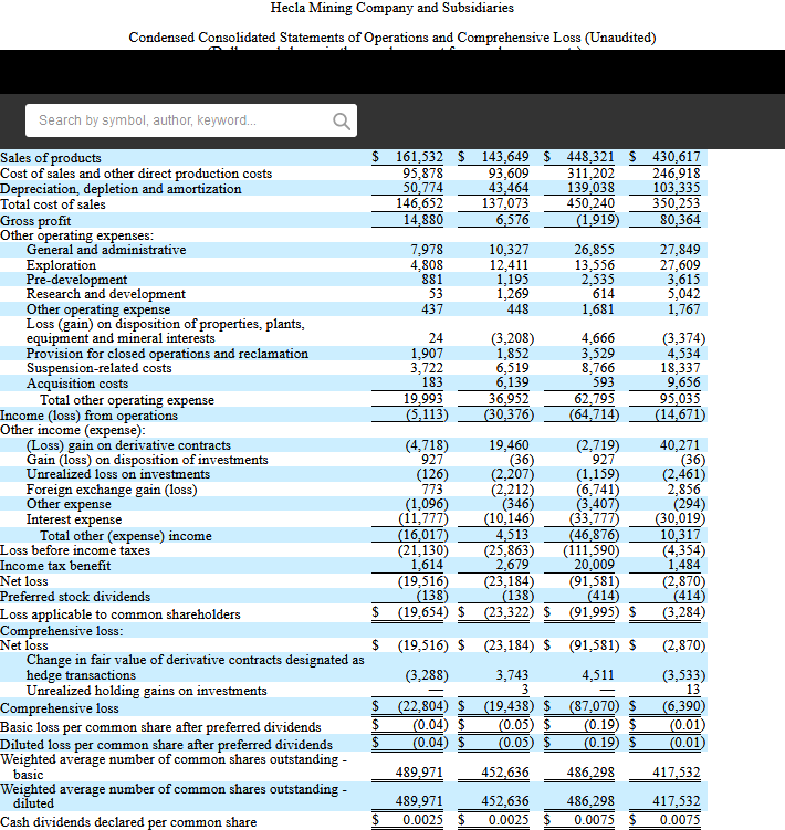 Nachdem wir uns ins Hecla-Reporting eingegraben haben, habe ich soeben einen Artikel gelesen, wie ganz allgemein an den Zahlen besonders zu beachten ist bzw. wie ganz legal der Aktionär hinter die Fichte geschickt werden kann.