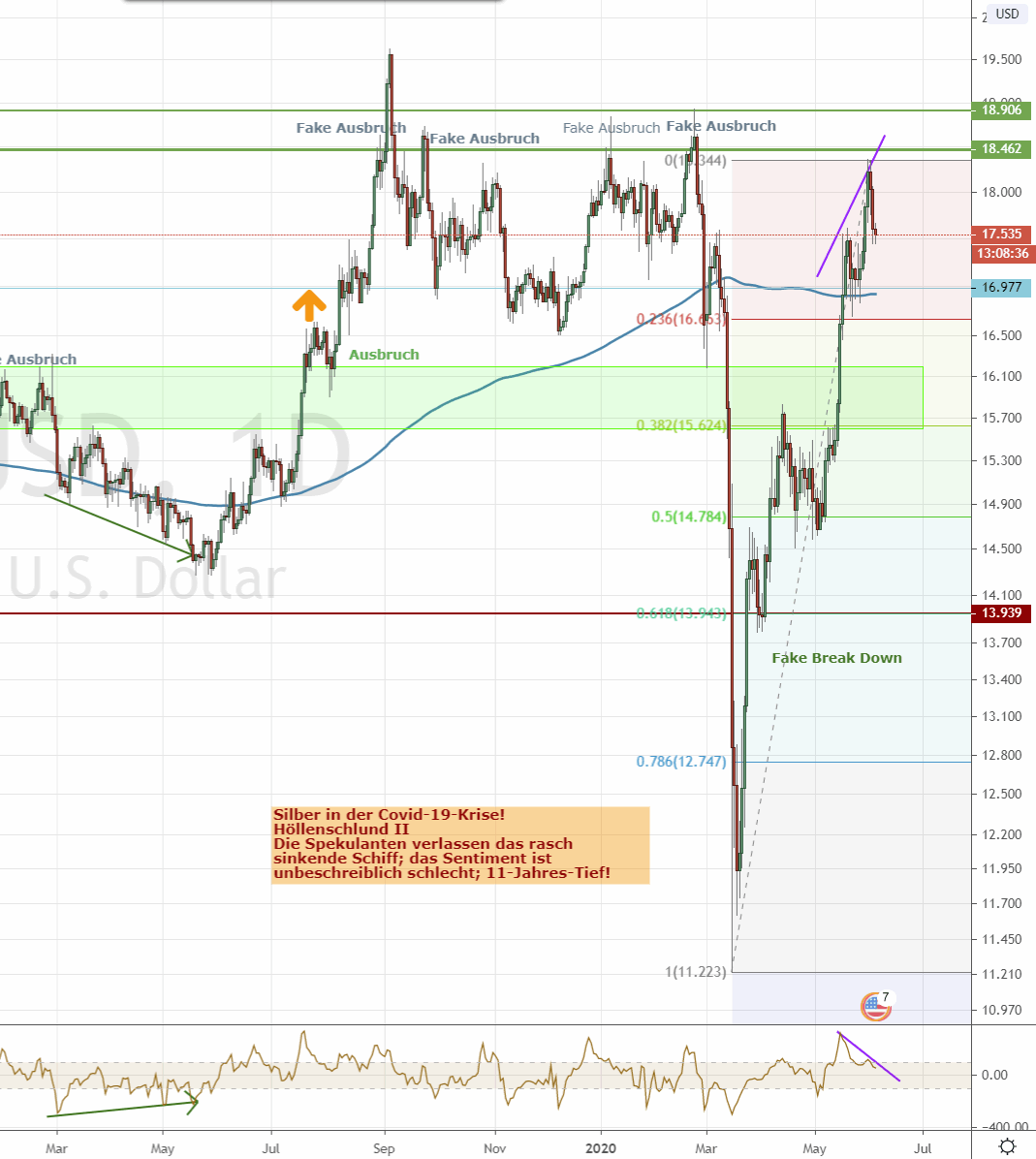 Silber wurde WIEDER am wichtigen Widerstand bei $18,5 gestoppt. Es war aber auch eine FULMINANTE Erholung gewesen!