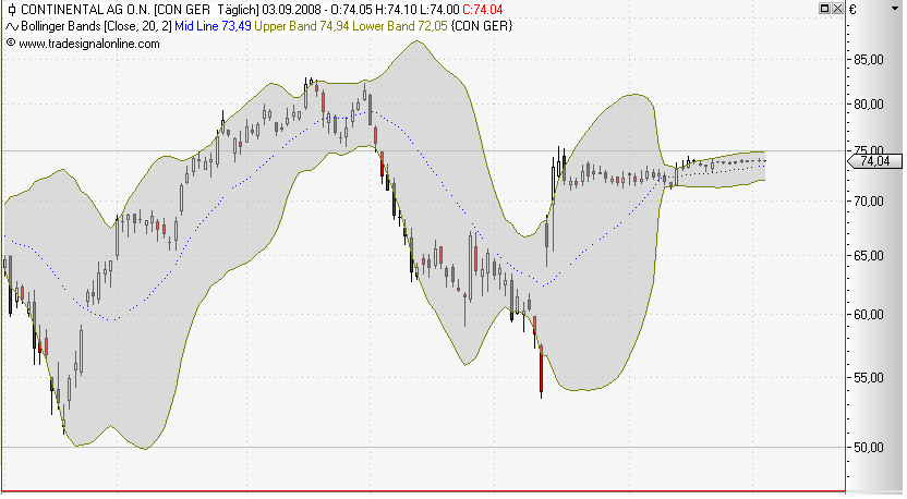 random walk bedeutet folgendes: man weiß, dass eine betrachtete größe bestimmten "kräften" unterliegt (z.B. der preis unterliegt den kauf-/verkaufs-orders), man weiß aber nicht genau, wie diese kräfte aussehen. D.h. man kann sie nicht exakt vorausberechnen oder ihre Richtung angeben, sondern nur sowas wie eine mittlere/typische Größe. das sagt dann auch der name random walk, d.h. eine größe wird in eine richtung bewegt, diese richtung kennt man nicht genau, aber man kann in etwa sagen, wie stark die bewegung im mittel ist (der dax wäre mE nach ein 1-dimensionaler random walk, entweder hoch oder runter). wenn man einen solchen random walk durchrechnet, bekommt man für die ausschläge eine gaußsche verteilung und mW basiert darauf auch die berechnung der BBs.