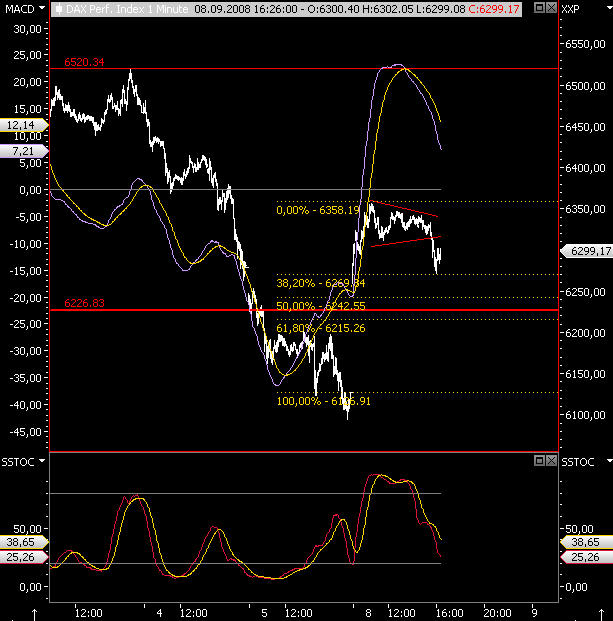 sind weniger euphorisch,es sieht so aus als ob der up-move hauptsächlich von banken getragen ist,also müßte es in den nächsten tagen eine branchenrotation geben,damit es weiter aufwärtsgeht.dagegen stehen die erwarteten schlechteren quartalszahlen.selbst der dümmste anschlußkäufer kann heute in der zeitung lesen,dass die aktion notwendig war,aber im prinzip kein ende der krisen in sicht ist.also wer bitte kauft jetzt aktien außer den spekus.auch wenn es bis 6800 hochgehen können,große adressen müssen noch verkaufen.also momentan halt ich charts für nicht besonders aussagekräftig da durch fed-sonderaktionen sekündlich manipulierbar. spannend ist's allemal.