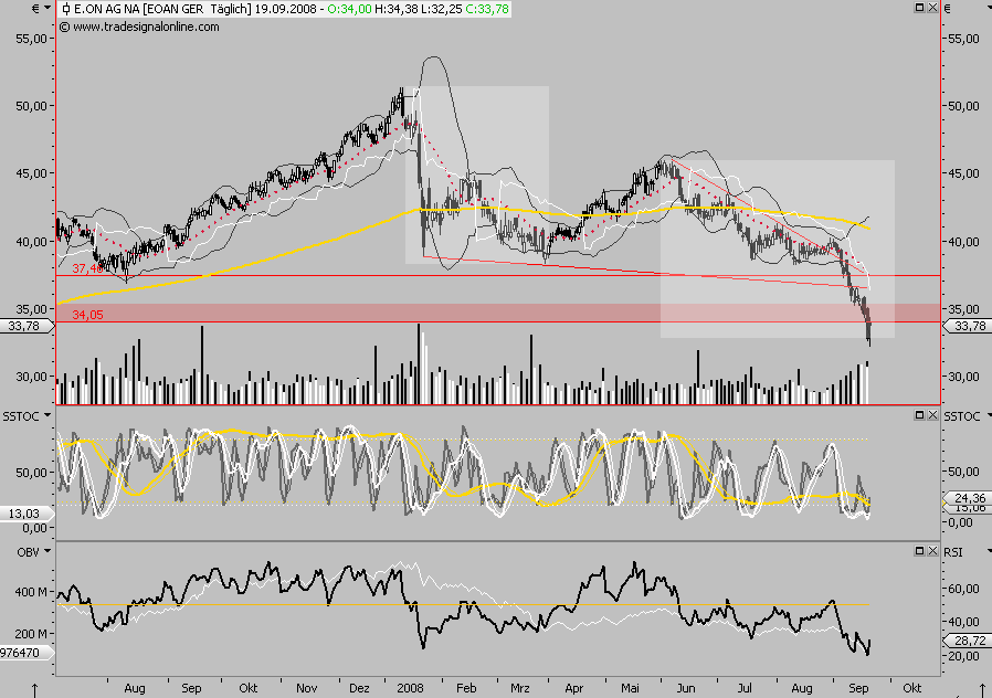 aber wenn diese Massnahmen der US-Regierung, egal wie nachhaltig sie sein mögen, kurzfristig nichts weiter an den Märkten bewirken, dann kracht es richtig im Gebälk. Denn was bitte sollte die Käufer denn dann noch auf absehbare Zeit in den Markt locken? Das wissen auch die big player. Es ist daher gut möglich, dass sich die Märkte vorerst beruhigen, um dann noch einmal deutlich bis zum Jahresende anzusteigen, was kurzfristige Rückschläge natürlich nicht ausschliesst. Die Alternative wäre, dass das smart money jetzt noch schnell aussteigt, und wir auf absehbare Zeit deutlich tiefere Kurse in DAX und Co. sehen. Ich halte wenig von Prognosen, aber momentan neige ich eher der ersten Möglichkeit zu. Wunschdenken? Vielleicht. Nächste Woche werden wir sicher mehr wissen.