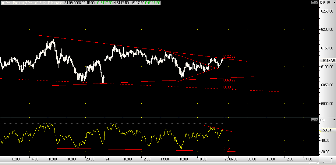 wird der dax und dow, bei einer lösung des 700billion $ problems nach oben ausbrechen, ich gehe von mind. 200 punkten aus. darauf hin, wenn deren plan keine halbherzige sache geworden ist, werden am nächsten tag anschlusskäufe stattfinden.