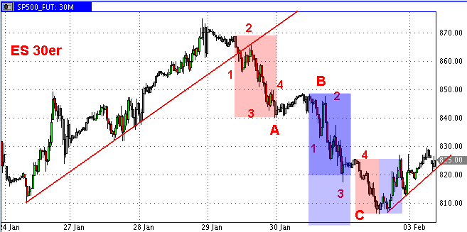 derzeit korrigiert er noch vom hoch. viel tiefer wird er im moment nicht dürfen, sonst trübt sich das bild wieder gen bearish und es besteht die gefahr einer SKS mit ziel < 810...