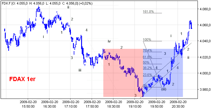 die 4014,66 werden zumindest für den DAX bei zwei stellen noch angezeigt. wunschkonzert wäre jetzt nochmal FDAX bis max. 4030 hoch und dann nochmal final > 40 punkte runter, dann sollte die v(iii) stehen und die (iv) losgehen können?