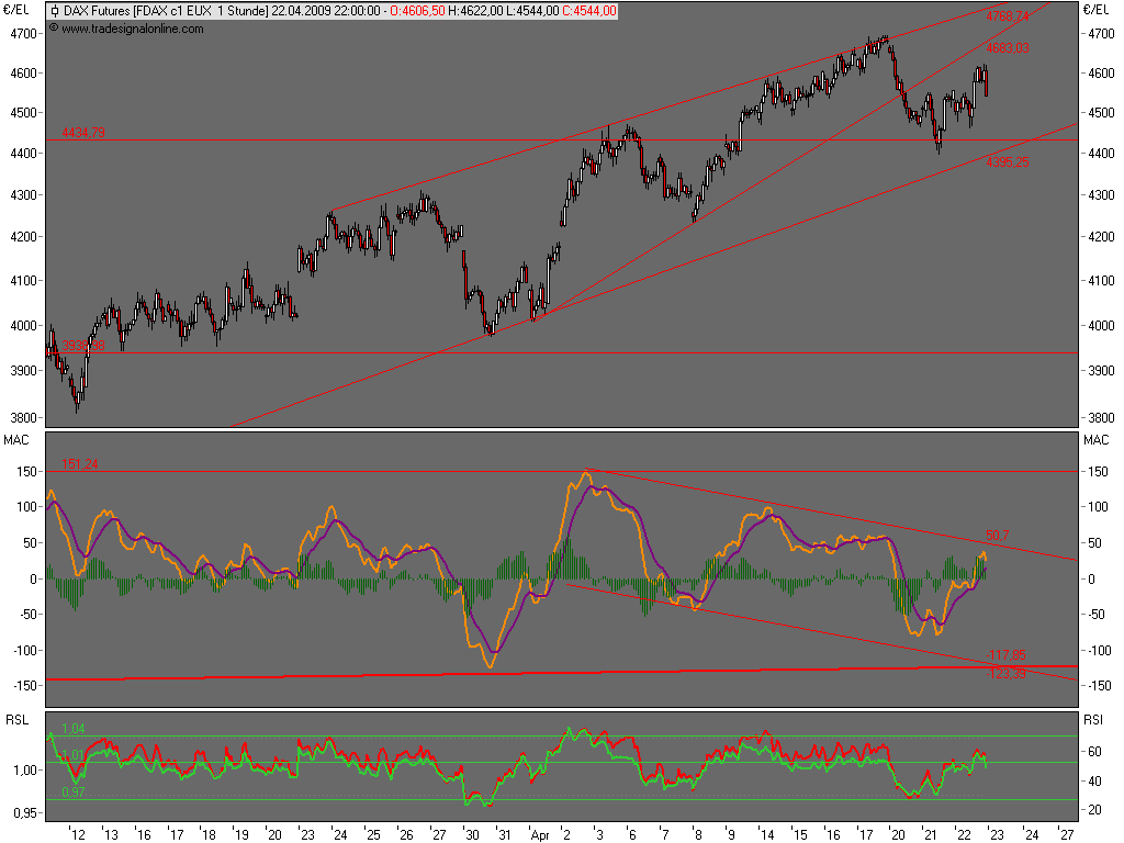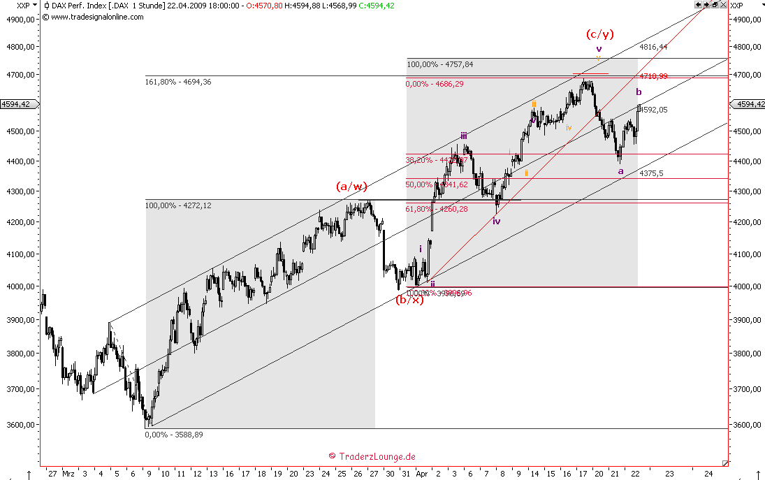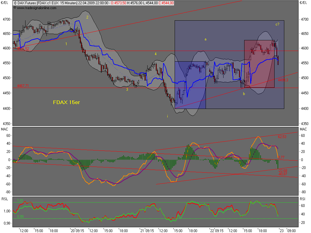 ich gehe erstmal nur vom Retracementbereich aus, es ist derzeit noch nicht klar, was am heutigen Tief beendet wurde (wenns beendet ist), eine a oder eine i, ich hatte heute nur mit 4490/4530 gerechnet, da sind wir ja bereits deutlich drunter gewesen, Retracements stehen im Chart