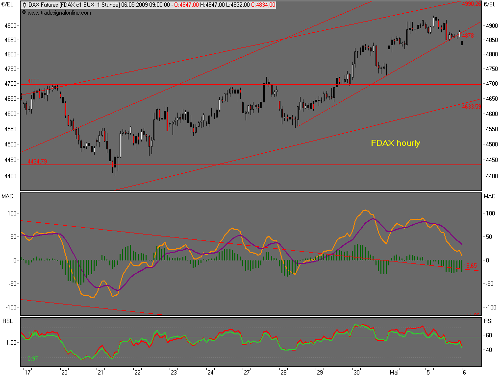 was mir derzeit fehlt ist die dynamik nach unten, d.h. ich denke nicht, dass er oben schon fertig ist. erreicht der DAX 4865 erstmal nicht, dann stehen die chancen gut, dass das ED (in einem größeren wellengrad) noch läuft. dann sehen wir uns vermutlich nochmal im bereich zwischen TH und 494x.