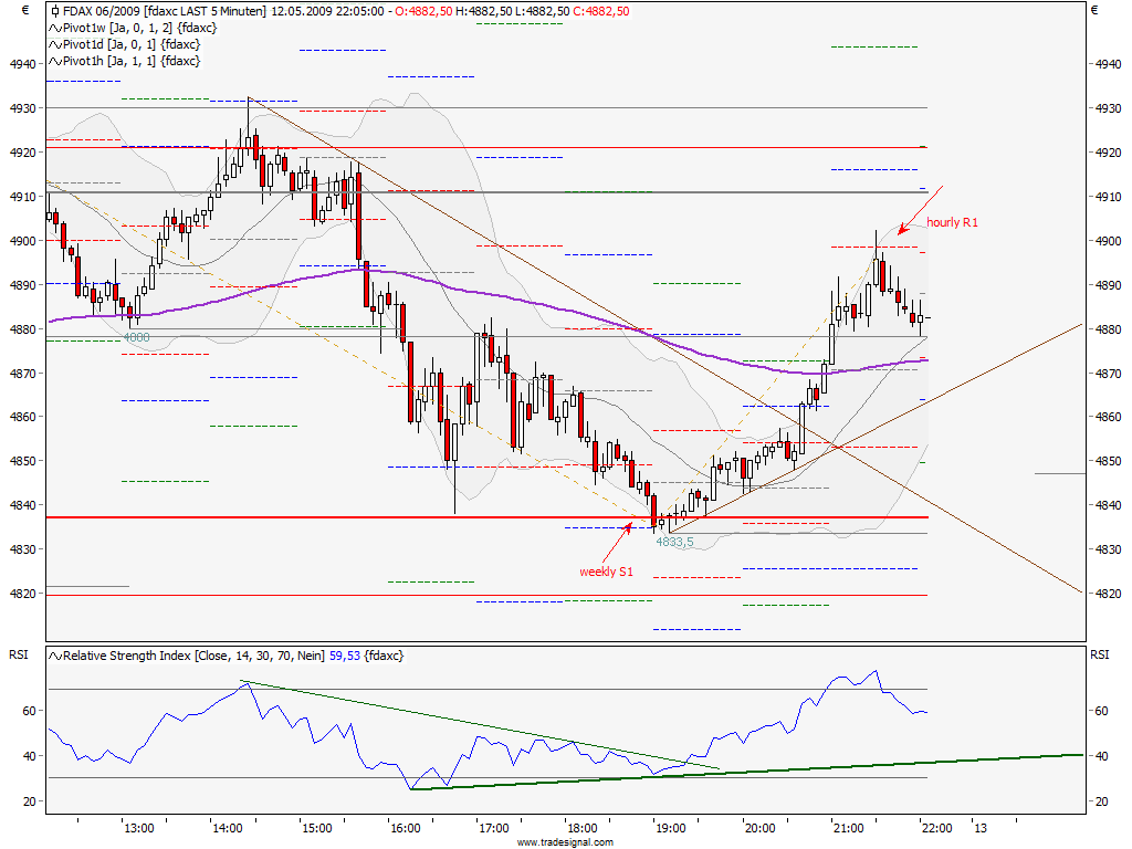 Unten im fdax ist zu sehen, daß man einen Einstieg in den move seit ~19.00 mit Hilfe der übergeordneten PPs sehr gut absichern konnte (zusätzlich zu fibos und tl's gar nicht mal so schlecht).