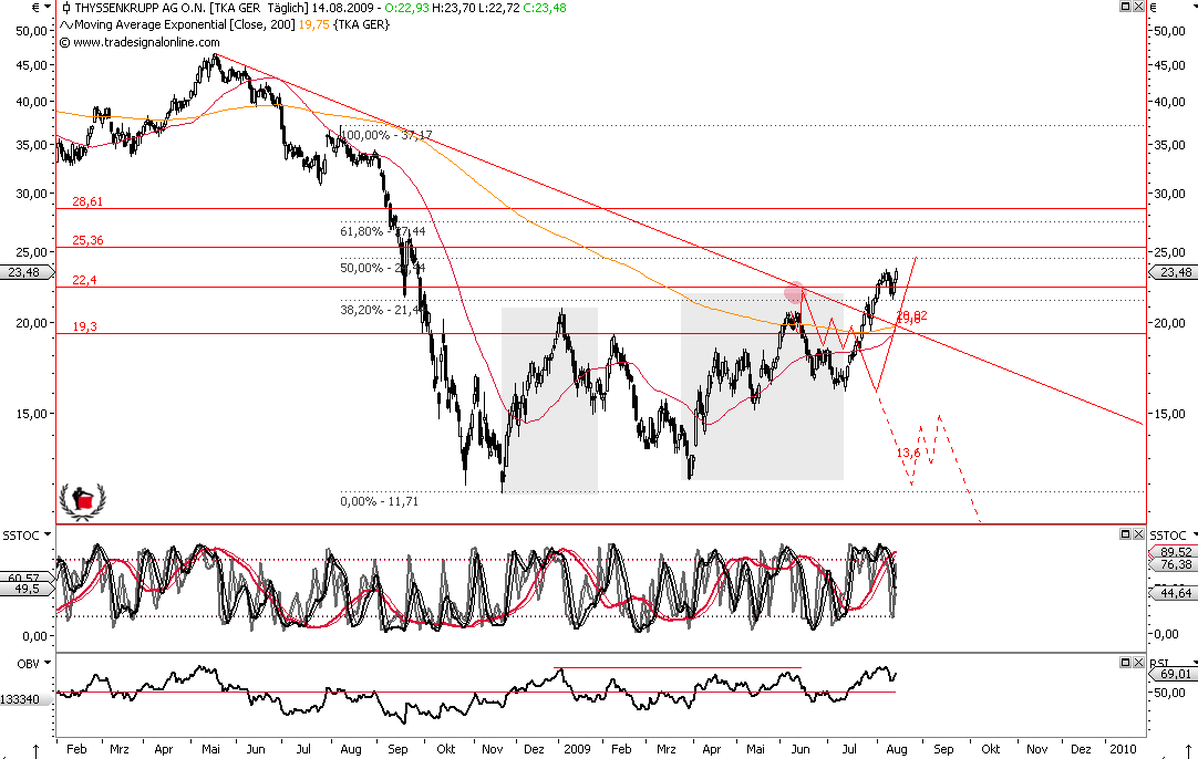 Hoch war heute bei 23,70, und damit ein Doubletop,
