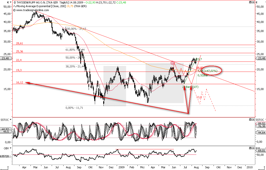 der anfängliche Kissback hat nicht stattgefunden, die anderen 2 präferierten und skizzierten Preisziele (Tief/Hoch) wurden jetzt punktgenau erreicht