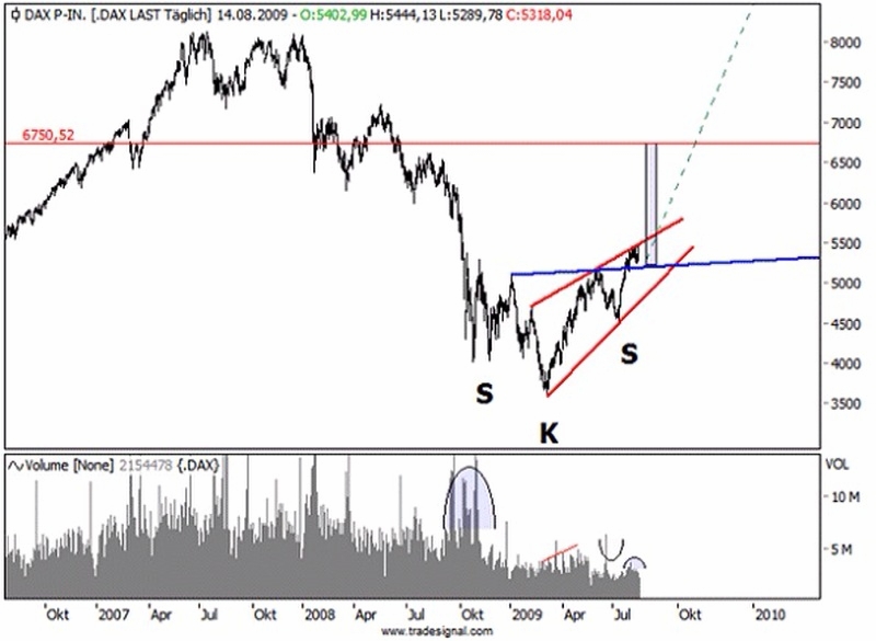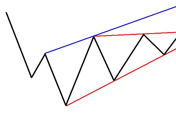 Find das auch immer lächerlich, wenn die Oberkanten von Aufwärtstrends (egal ob bei Keilformation oder Trendkanal) von einem Punkt ausgehen, der zeitlich vor dem Tief lag. Macht einfach keinen Sinn. Den Keil oben kann man daher vergessen.