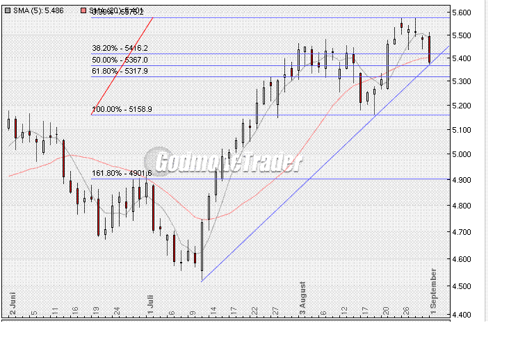 zum DüX: der INX steht schon wieder am zwischenhoch vom 7.8., während der (f)dax noch 1% drunter ist. DJ ist schon knapp drüber und FTSE und CAC schon deutlich. ich würde also nicht sagen, dass der DAX zu hoch steht. vielmehr scheint er schon (nach unten) vorzulaufen?