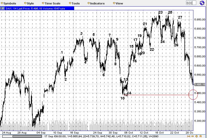 MOB 4 ED war 5611, somit ist die 5 ED vorzeitig beendet worden, MOB stand ja im Chart, erstes Ziel ist mit 5442 fast erreicht, das 2. liegt bissel tiefer, da kann er sich aber Zeit nehmen, ich rechne in Bälde mit einem Bounce