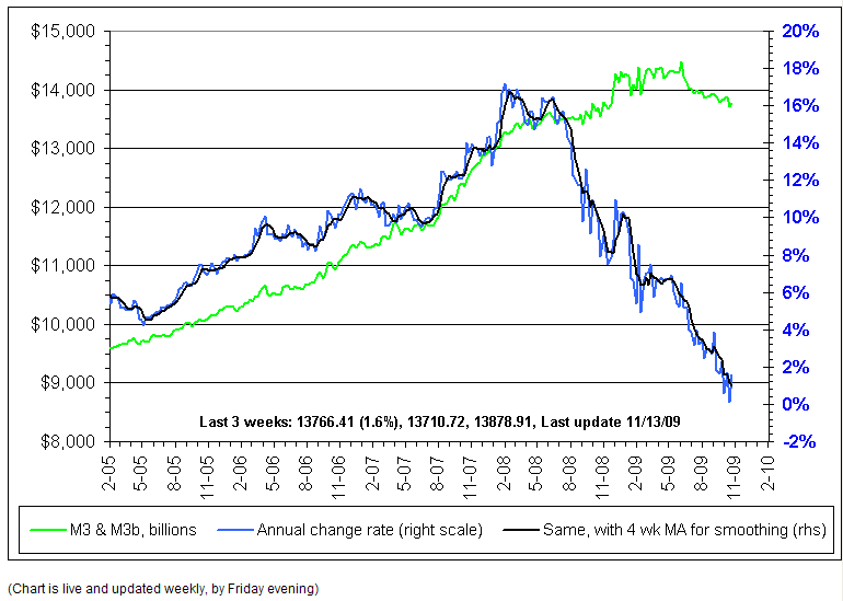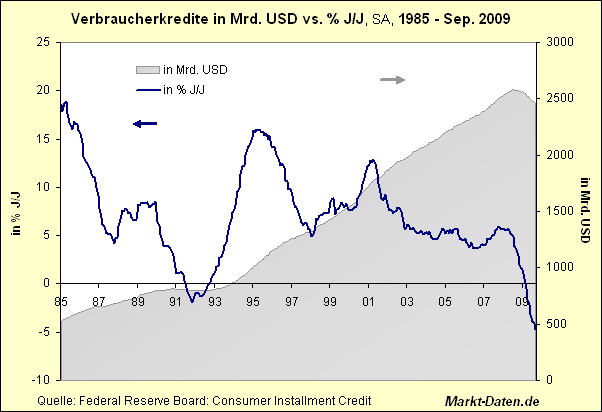 bekommt der Dollar eigentlich gar nicht, as: Seit Mai ist z.B. die Geldmenge M2 (8,3 Bio $) in den USA nicht mehr gestiegen, siehe link unten. In der Wirtschaft kommt auch deshalb kaum Geld an, weil nur wenig neue Kredite vergeben werden und alte Kredite zurückgezahlt werden. Ohne die staatliche Verschuldung hätte die USA Deflation und Depression, denn zum ersten Mal seit dem 2.Weltkrieg sinkt in den USA das Kreditvolumen der privaten Haushalte, siehe chart.