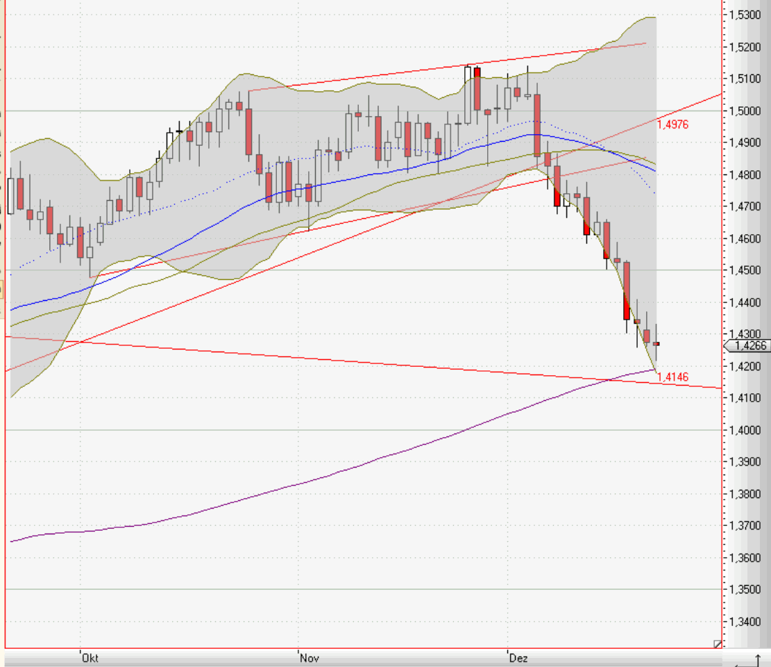 Glaube nicht, daß die 1,42 bei der sich aktuell die 200 Tage Linie bewegt so leicht durchbrochen werden.
