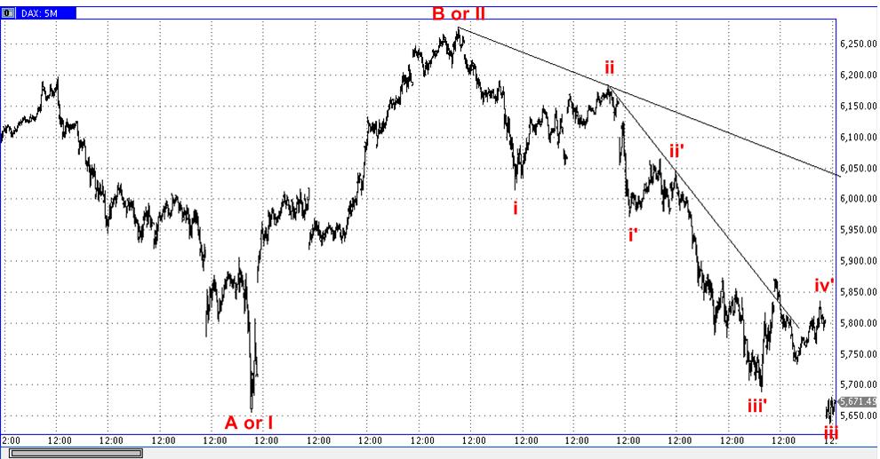 Die ersten beiden Bewegungen also bereits abgehandelt, die Erholung sollte beendet sein. Pflicht erfüllt incl. Retest (bzw. kurzfristiger Ausflug darüber) des durchbrochenen Aufwärtstrends.