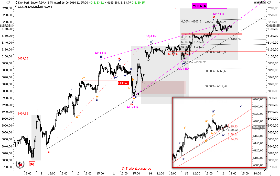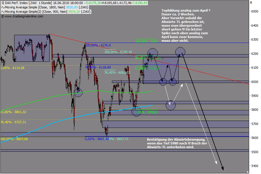 AS, beide Szenarien zeigen letztendlich nach unten. Mit dem heutigen Verlauf bin ich recht zufrieden. Von der gestern gebrochenen Abwärts-TL konnte er sich per saldo nicht nachhaltig absetzen. Und das Zeitfenster für die Bullen schließt sich nun. Gut möglich, dass noch in dieser Woche ein deutlcher Schlag nach unten kommt. Timing. Mit einer Spekulation auf den Eurex-Verfall hat das nichts zu tun. Sowieso praktisch unmöglich, wenn es sich um einen dreifachen handelt.