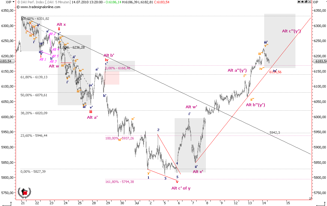 Insofern geh ich als Nicht-Wellentechniker eigentlich davon aus, dass es entweder nicht mehr über 6300 geht sondern eure v vorher abbricht, oder aber die Märkte gehen stärker hoch als von euch gedacht. Wobei ein kleines Fehlsignal natürlich nie ausgeschlossen werden kann. Ich würde daher auch SLs und SBs nie allzu eng setzen. Derzeit ist es wohl am besten, flat zu bleiben. Hab ich leider vorgestern nicht beherzigt.