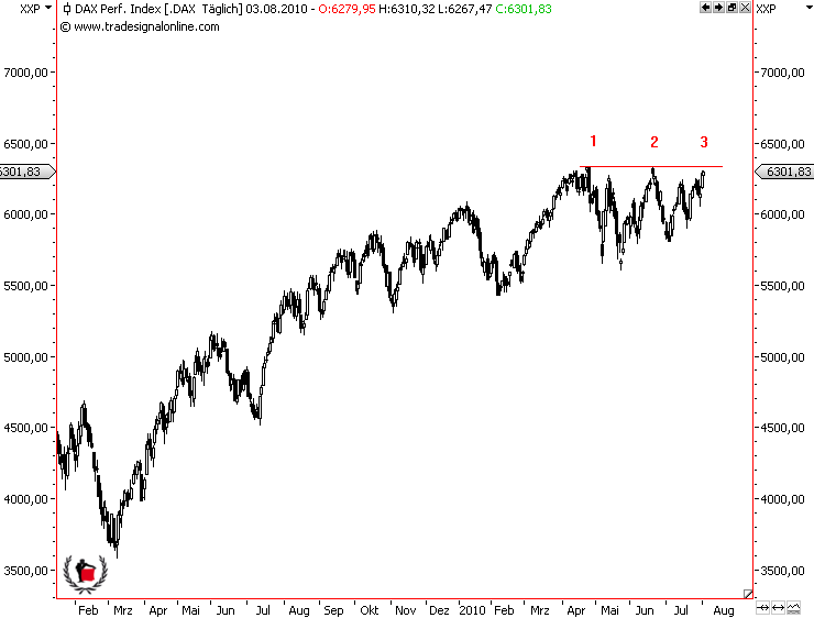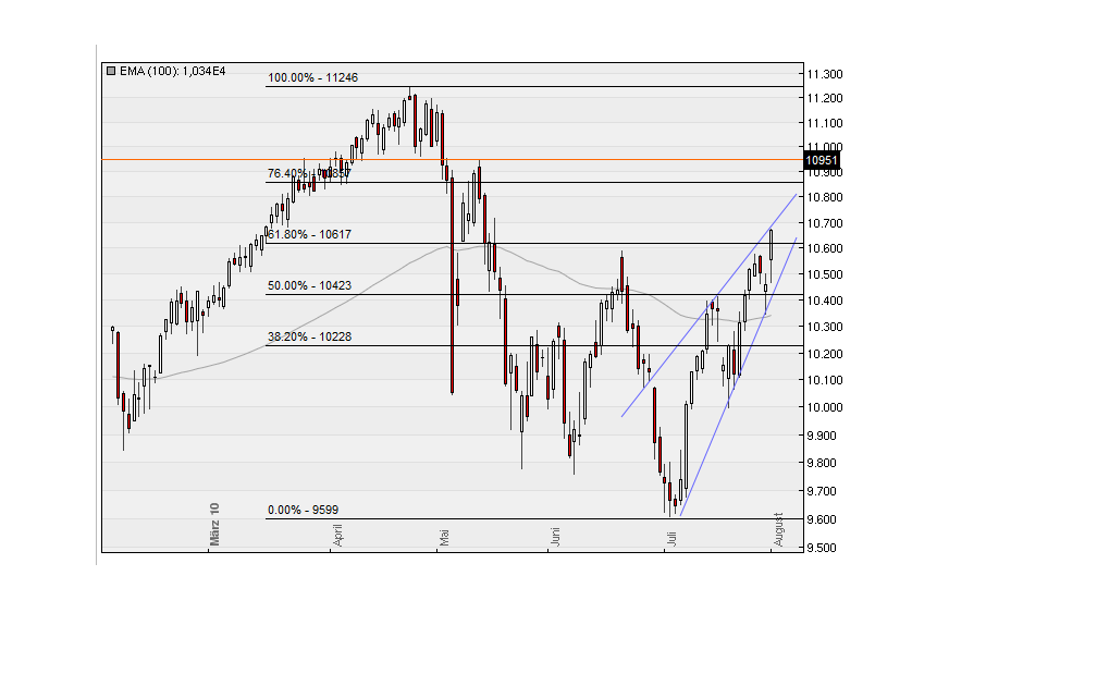 Maximal könnte ich mir einen Retest 9600 vorstellen im Oktober, eher aber ein höheres Tief. Ausgehend von 10900/11000 etwa zurück auf 10.000/100 vielleicht im Oktober. Dann Startschuß der Rally.