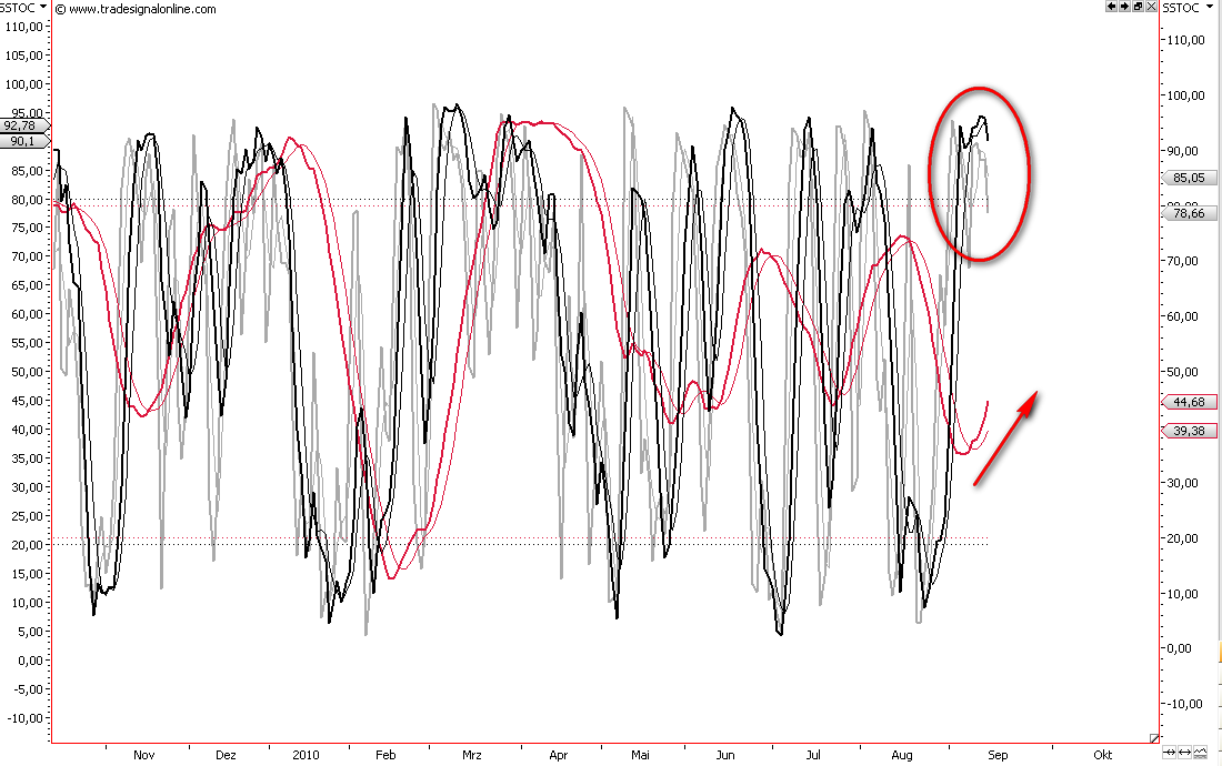 Das alles könnten Argumente für einen engen K.O. sein. Was mich dabei aber wirklich stört: mit einem solchen Schein reduziere ich letztendlich meine Performance. Grund ist das Aufgeld, das quasi immer gleich hoch ist, egal ob der K.O. nun 100 oder 1000 Punkte entfernt liegt. Der Schein kostet also ca. 1,2 Euro bzw. 10,2 Euro. Gehe ich nach 100 Punkten Gewinn raus, sprich für 2,2 bzw. 11,2, dann habe ich mit dem engen K.O. 83% Gewinn, mit dem anderen 9,8%. Da ich bei dem engen K.O. aber nur 10% des Einsatzes nehme, um das absolute Risiko gleich zu halten, müßte ich mit dem entsprechend auch 98% Gewinn machen, um auf die gleiche Performance zu kommen wie mit dem weiten SL. Den Spread habe ich dabei gar nicht berücksichtigt. Der ist auch immer gleich hoch, wirkt sich also auch negativ auf die Performance des engen Scheines aus im Vergleich zum weiten Schein.