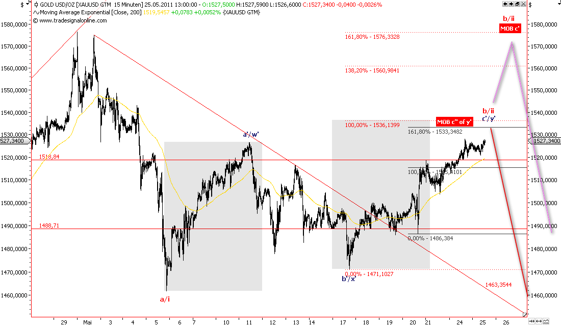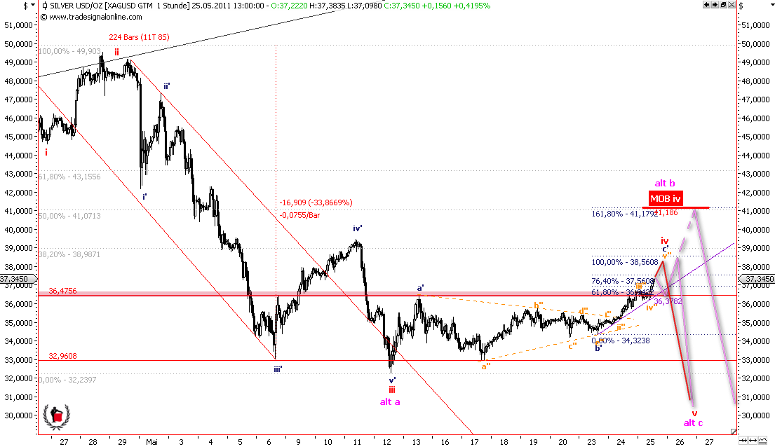 weitere Alternative bearish: über der 1 steht eigentlich 3(ED) und die a'(b(2)) war das failure in der 5; allerdings sind die darauffolgenden upretracements relativ hoch und Dow,Dax und Nasdaq hätten kein 1-4er overlap gemacht