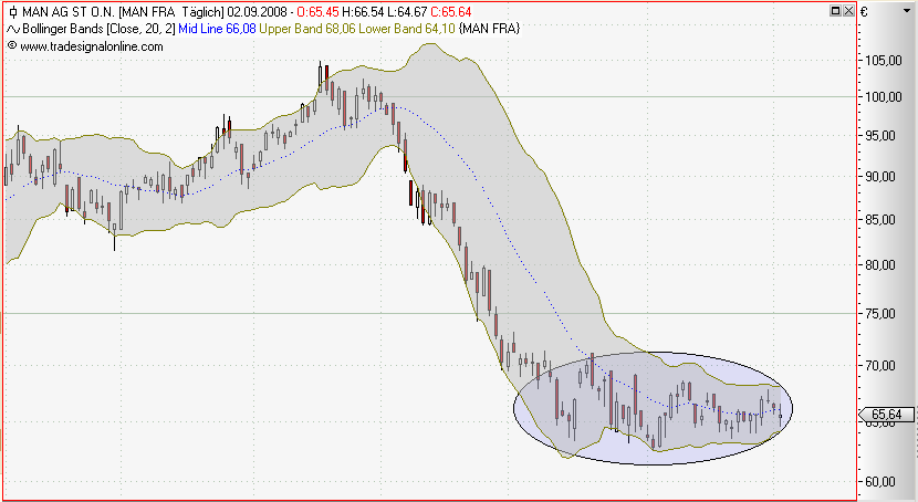 bollinger schnüren sich zusammen. könnte ein schöner mittelfristigerer ausbruch werden.