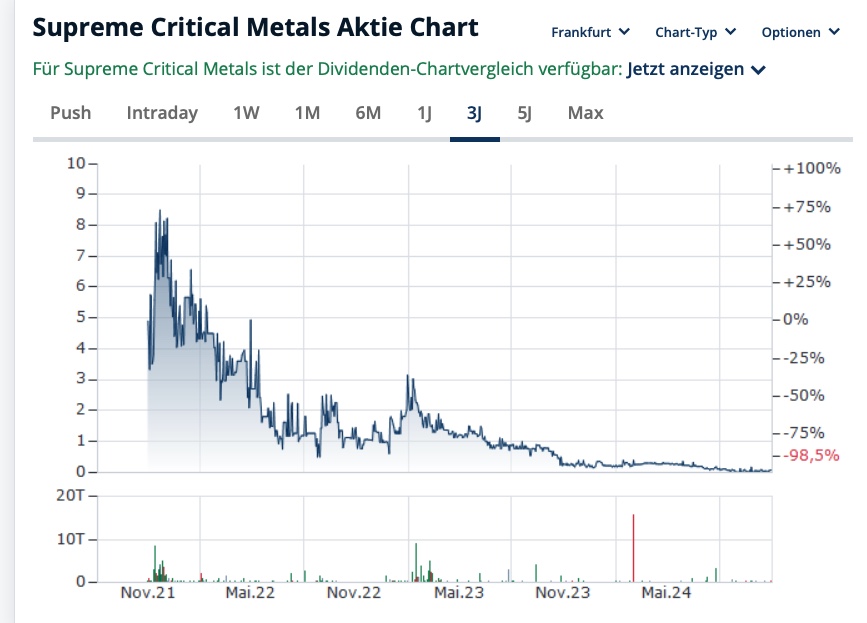 Supreme Critical Metals ist nach MK und den vorhandenen Lithium-Projekten die derzeit günstigste Lithium-Aktie der Welt!
