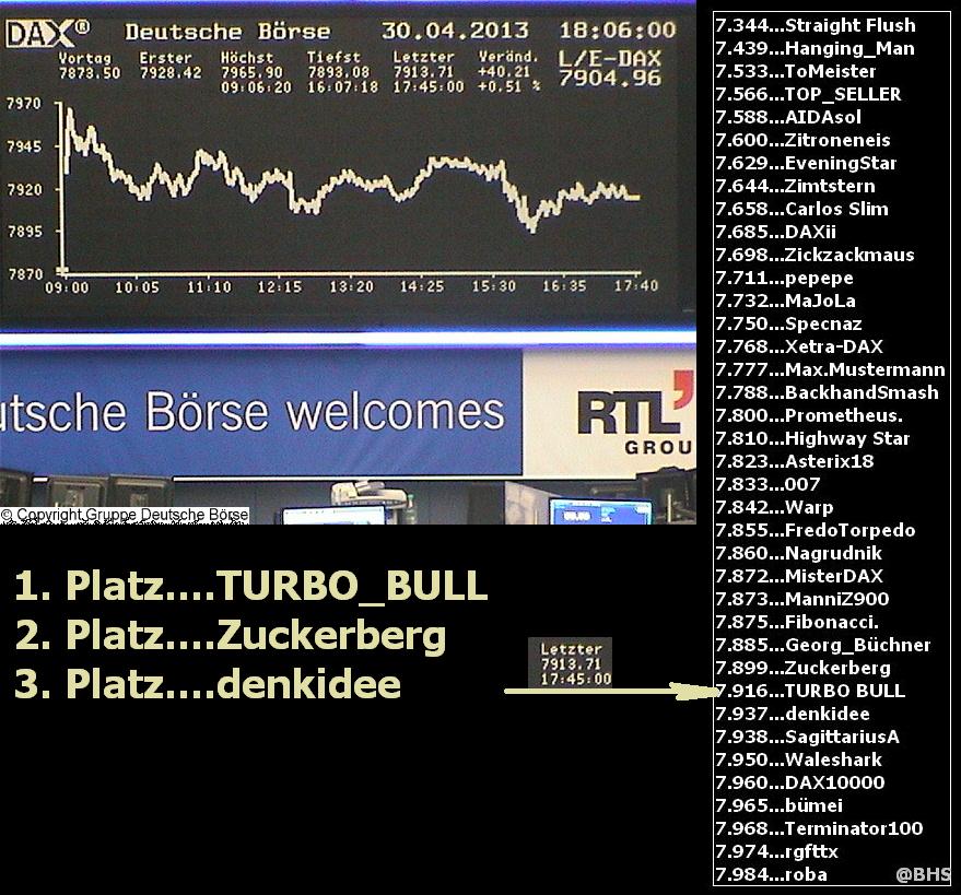 Gewinnerlinks 2.050. DAX Tipp-Spiel, Dienstag 30.04.2013, 17.45 Uhr, DAX 7.873,50
